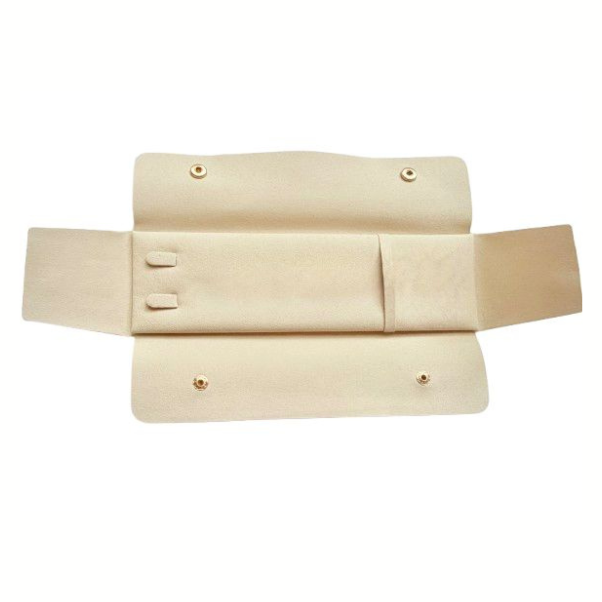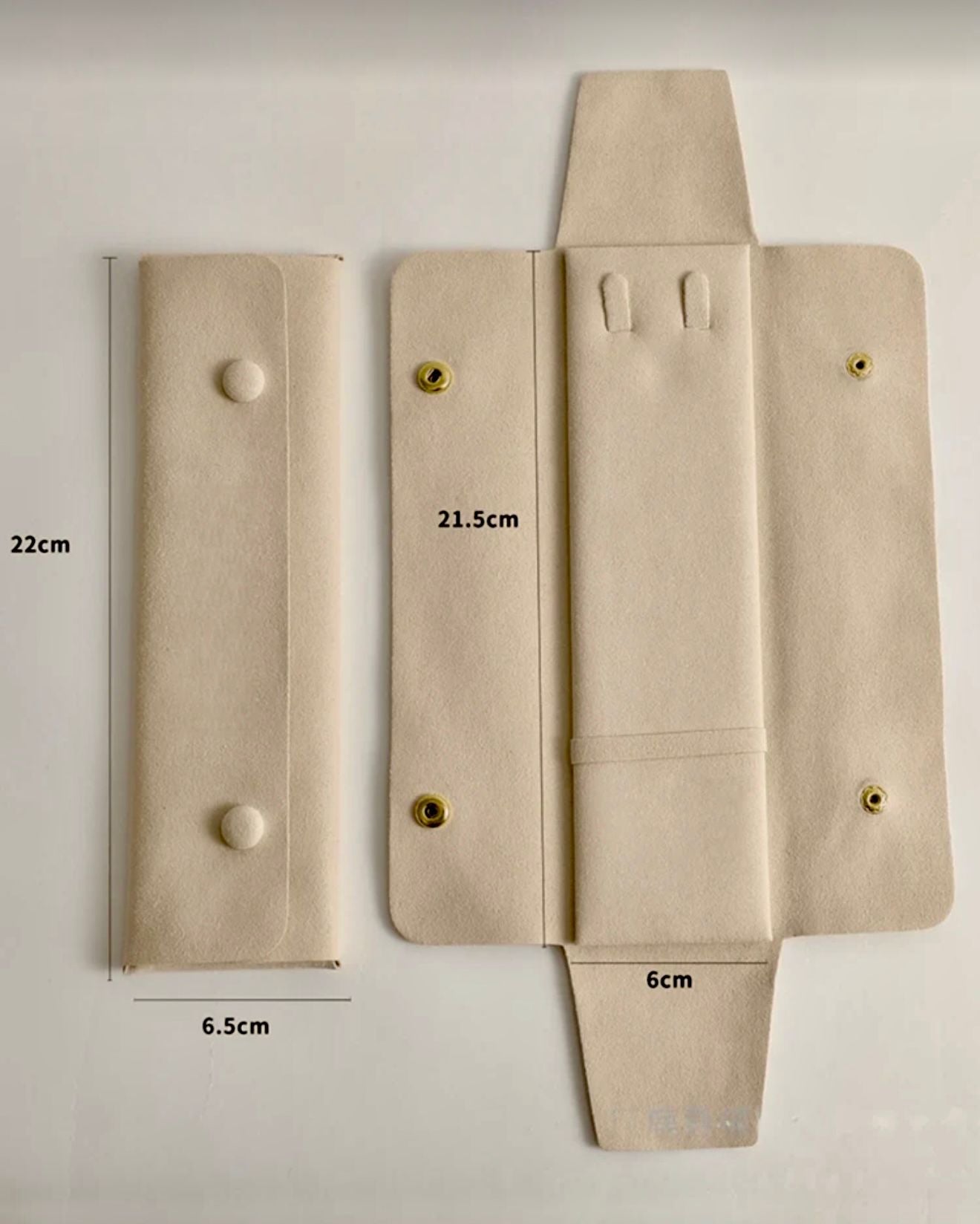Measuring just 22 cm by 6.5 cm, this ultra-thin suede accessory slips effortlessly into any handbag without adding bulk.