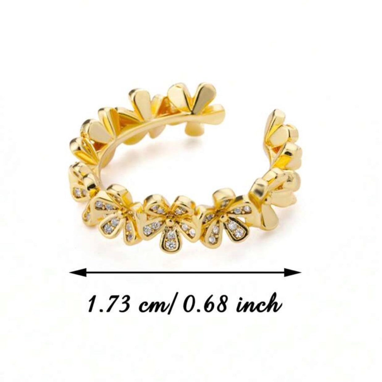 Style: Adjustable stainless steel ring with small cubic zirconia flowers.